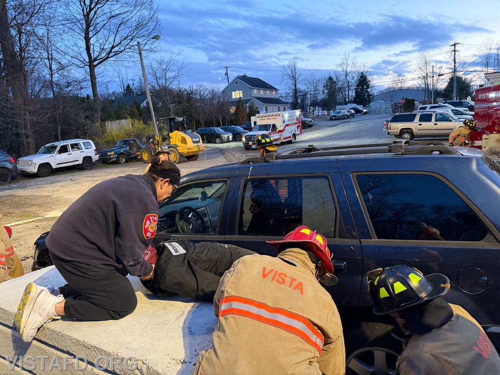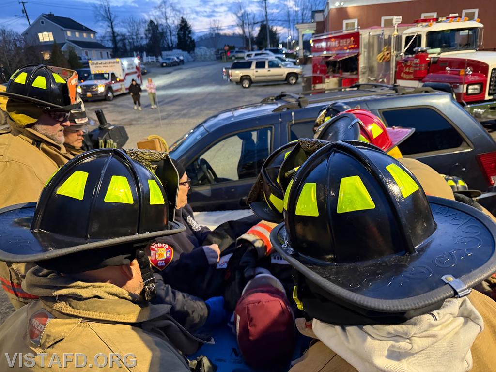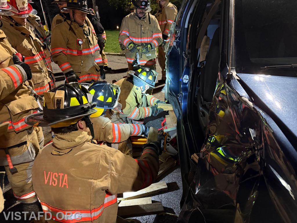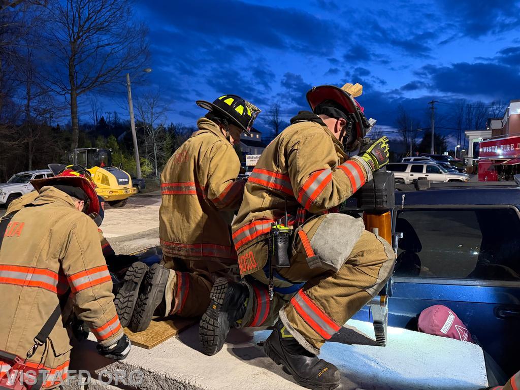 During this drill, Vista Fire Department personnel trained on responding to a vehicle vs. pedestrian incident, with a focus on patient stabilization, rapid assessment, and safe victim removal. Members practiced scene size-up, vehicle stabilization, patient packaging, and coordinated patient removal while working together as a unified Fire and EMS team. These incidents can be complex and time-sensitive, often involving traumatic injuries that require quick action while still ensuring the safety of both the patient and responders.
