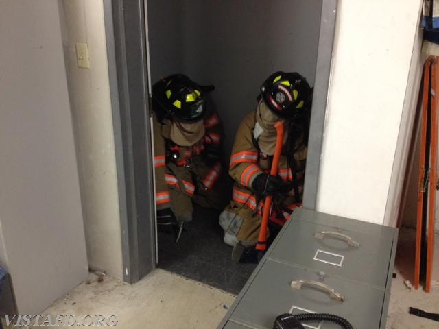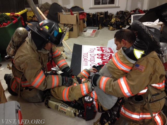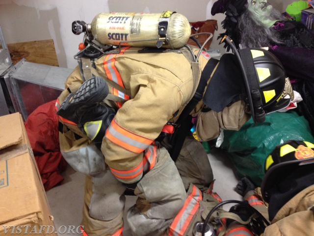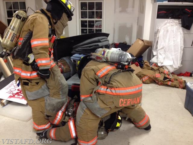 | This week's Monday night drill consisted of Search & Rescue + F.A.S.T. (Firefighter Assist and Search Team) training for our Firefighters. In the drill scenario, Vista Firefighters entered a small area room and performed techniques that would be used during search & rescue or F.A.S.T. operations.